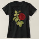 This beautiful t-shirt design shows a vintage red rose graphic with green leaves. It's an elegant, pretty shirt design, perfect for anyone who loves Victorian flowers.