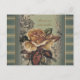 A very pretty postcard featuring a pretty "painted" style old fashioned English golden rose, surrounded by victorian floral decoration and set against a striped background...a must for those that love vintage floral styles.