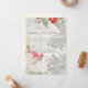 Gorgeous vintage ephemera featuring romantic pink and coral roses, old style German handwritten script text and ornate engraved floral scrolls on grungy ecru parchment.