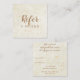 A chic rustic gold script referral card featuring a natural antique boho background with elegant hand-lettered script typography. Personalise with your contact information and special offer on the reverse. Designed by Thisisnotme©