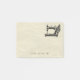 Sewing machine customise with open face font lettering using the product templates. Set on creased beige vintage style parchment paper texture.