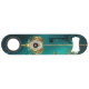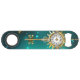 Gold, antique keys with gears and dials hang on gold chains on luminous green background.