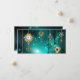 Gold, antique keys with gears and dials hang on gold chains on luminous green background.