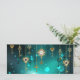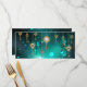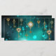 Gold, antique keys with gears and dials hang on gold chains on luminous green background.