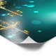 Gold, antique keys with gears and dials hang on gold chains on luminous green background.