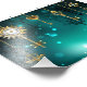 Gold, antique keys with gears and dials hang on gold chains on luminous green background.