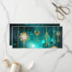 Gold, antique keys with gears and dials hang on gold chains on luminous green background.