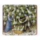 Ancient Mediaeval Italian miniature of squash harvest late 1390..Classic rural scene with green leaves and squashes..Part from " Season's Fruits ".This classic design with old aged brown parchment effects is perfect for nutritionists,dieticians,caterers, food service,preparation or restaurant ,catering industries.