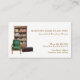 A business card design that can be used for antique stores and dealers or for some on who does furniture upholstery restoration and even a designer. This card features an antique chair in the Victorian fashion, an old trunk and an antique bookshelf full of antique books.