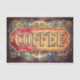 This vintage design centres around the word “COFFEE” in softly shaded, antique-style lettering that evokes the charm of an old world café. Set within an ornate floral frame, the background blends gentle gradients of rose pink, amber, gold, and dusty blue, creating a glowing effect. Whimsical golden flourishes curl through the corners and the overall mood is warm and romantic, making this an ideal choice for projects that blend elegance with a touch of nostalgia. Artwork similar to a pastel-painted sign with romantic vintage flourishes and bohemian softness…..COLOR COMBINATIONS: