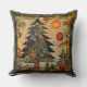 Antique Style Quilted Christmas Tree Scene Throw Pillow
