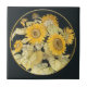 Antique Sunflower Ceramic Art Round Gold Border Tile