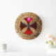 ANTIQUE TEMPLAR CROSS Red Ruby Gem Large Clock