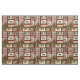 Fun and festive holiday pattern featuring vintage Victorian era Christmas cards with evergreens and decorative borders on red damask background.