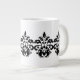 An elegant damask pattern in black surrounds a white jumbo mug. These mugs are great. I love mine.