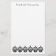 White personalised stationery with an elegant black damask border at the bottom and space for your name or other text at the top. Very classy and elegant.