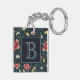 Pretty floral with pink and yellow flowers entwined with green vines and leaves on dark background to personalise with an initial.