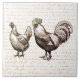 Antique Vintage Rooster Chicken Red Script Ceramic Tile