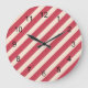 Antique White and Brick Red Diagonal Stripes Large Clock
