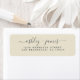 The Antique White Off Black Script Return Address label features graceful off-black script names paired with classic serif address text on a soft antique white background. This long return-address label adds a refined, minimalist touch to wedding invitations, save-the-dates, thank-you cards, and special event mailings. Its warm neutral tone and elegant lettering create a timeless, polished look on any envelope.
