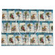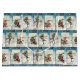 Festive and whimsical antique Christmas card collage featuring young angels on ice skates in the snow, Christmas trees and holiday greetings framed by a dark blue winter sky with stars. Repeating pattern can be scaled up or down.