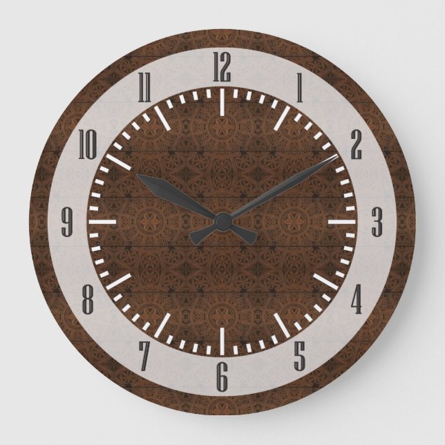 Antique Wooden Cabinet Tiled Symmetry Pattern Large Clock