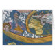 Vintage illustration antique world map detail by artist Martin Waldseemüller ( c. 1470-1520); a German cartographer. He and Matthias Ringmann are credited with the first recorded usage of the word America, on the 1507 map Universalis Cosmographia in honor of the Florentine explorer Amerigo Vespucci. This antique map detail from 1507 features Claudius Ptolemy, the wind blowing from the west, several continents (Africa, Asia and Europe) and blue oceans and seas.