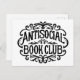 Antisocial book club postcard. Light academia vintage books aesthetic. Introvert girl anti social reader reading squad group room decor small prints gifts.