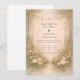 A romantic woodland-inspired design featuring soft neutral florals, elegant antlers, and a warm vintage parchment background. The composition blends organic greenery with refined details for a timeless boho aesthetic that feels both intimate and elevated. Perfect for couples drawn to nature, understated luxury, and classic romance with a rustic touch.