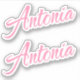 Antonia name in cursive script font in pretty pink x2. Two copies of name.