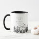 This coffee mug features a black and white pine tree sketch with editable colouring. This ceramic cup is a perfect keepsake gift for the bride and groom.