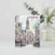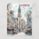This travel postcard, in watercolor illustration style, showcases the European skyline of Antwerp, Belgium.