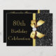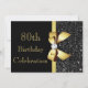Any Age Birthday Black Faux Sequins Gold Bow Invitation