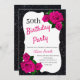 Any Age Birthday Black Glitter Pink Roses Invitation