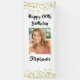 Celebrate any age birthday with this personalised photo banner with wishes for a HAPPY ##TH BIRTHDAY. Modern, chic design with a gold confetti border and black brush script text which can be changed to a different font style or colour to coordinate with your party theme. The vertical arrangement is ideal for hanging on your front door or to show where the party is. PHOTO TIP: For fastest/best results, choose a photo with the subject in the middle and/or pre-crop it to a similar shape as shown BEFORE uploading and it will fill in the photo space provided perfectly. Contact the designer if you’d like this design modified, on another product or would like coordinating items to complete your party ensemble.