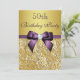 Any Age Birthday Gold Faux Sequins Purple Bow Invitation
