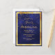 On front: A trendy, modern 50th or any age birthday party invitation card for men. A dark blue, navy blue background. The blue colour is uneven. With a faux gold frame and golden confetti, golden coloured letters. Templates for a name, age and your party information. Back: white background.