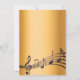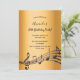 A trendy, modern 50th or any age birthday party invitation card. A faux gold metallic looking background, and dark music notes, black coloured letters.