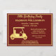 Unique special year birthday party invitation -- with a golf theme in red and gold and it's perfect for a Golfer. It features a gold foil Golf Cart and there is much to personalise to make appropriate for your own event. Any design questions, just send an email to charmdesignstudio@rcn.com and we'll be delighted to assist. There are many party items that would be appropriate for your event -- just ask!