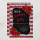 Elegant red, silver stripes glitter and red roses birthday party invitation for women of any age. The age can be changed for any age. Text can be changed to anything to fit your event. Fonts, font colour and text are completely customisable! Paper shape and type can be customised to fit your budget and taste!
