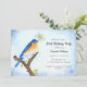 Fresh spring beauty sets the tone for this April birthday invitation, featuring a softly painted bluebird perched on a flowering tree branch, gently holding a white daisy, April’s birth flower. A tiny ladybug rests nearby, symbolizing happiness and good fortune, adding a sweet seasonal touch to the artwork.