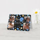 Create a stylish photo collage greetings card! Personalise the template with four favourite photos, the recipient's name, and birthday age. A fun design featuring round confetti, balloons, and "Happy Birthday" in a trendy script. Perfect for family, kids, friends, and pets! Printed colours: blue, black, white and gold.