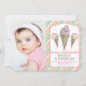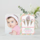 Ice Cream Cone Glitter Stripes Birthday Photo Invitation