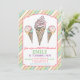 Ice Cream Cone Glitter Stripes Birthday Invitation