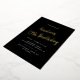 Modern birthday invitations that can be changed to any age. Gold script on a black background.