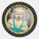 Any Age, Photo Birthday Number Pattern Gold/Black Classic Round Sticker