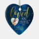 A fabulous custom photo collage Anniverary ornament. This blue space themed design is a gorgeous way to send a heart felt wedding anniversary message. Fill out the heart with a favourite photo. A stylish blue and gold personalised design they are sure to love.