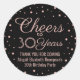 Add a personalised finishing touch to birthday party thank you notes or favours with custom pink and black round stickers / envelope seals. All text is simple to customise or delete. This template is set up for a 30th birthday for her, but can easily be changed to another year or event, such as an anniversary. Design features pink rose gold faux foil confetti dots on a black background, stylish script calligraphy "Cheers to 30 years," and modern minimalist typography customisable message at bottom. Please note that pink is printed colour, not metallic foil.