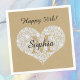 Any Birthday, Diamond Heart, Gold Monogram, Name Napkin