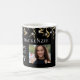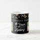 Celebrate any age birthday for him or her with this black, gold and white commemorative keepsake mug featuring a calligraphy script typography design stating # YEARS IN THE MAKING that incorporates their age and established birth year within the design, personalised with 2 photos (perhaps Then and Now photos), your custom text and accented with gold streamers, confetti and lights. ASSISTANCE: For help with design modification, personalisation, colour change or transferring the design to another product, contact the designer BEFORE ORDERING via Zazzle Chat or makeitaboutyoustore@gmail.com.